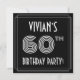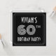 La parte delantera de este elegante diseño de tarjetas de invitación para fiestas de 60 años cuenta con un nombre personalizado, un elegante estilo Art Déco inspirado en el número "60", el mensaje "¡FIESTA DE CUMPLEAÑOS!", y un patrón fronterizo formado por líneas. El frontal también tiene un fondo de color negro de forma predeterminada, pero se puede personalizar a un color diferente si se desea. En la parte posterior se incluyen detalles personalizados sobre el evento, como la fecha, hora, ubicación/lugar y cualquier otra información importante. Invitaciones lujosas, elegantes y personalizadas como éstas pueden ser usadas para invitar a los invitados a una fiesta de cumpleaños que se celebra para honrar el cumpleaños número 60 de alguien. [~Z0000615]