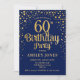 60.ª Invitación a la fiesta de cumpleaños. Elegante diseño en azul marino y falso oro purpurina. Presenta un diseño elegante de tipo de letra y letra de guión. Mándame un mensaje si necesitas edad personalizado.