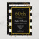 Invitación Fiesta de cumpleaños 60 negro y blanco | Brillante