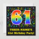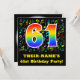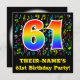 El frente de este divertido, vibrante y emocionante diseño de la fiesta de cumpleaños incluye un gran número de "61" con un diseño inspirado en el gradiente del espectro arcoiris. También incluye un nombre de personalizable y el mensaje "¡Fiesta de cumpleaños número 61!". Parte del fondo cuenta con notas musicales divertidas y coloridas y un patrón de símbolos. En la parte posterior se ofrece información/detalles editables relacionados con el evento al que se invita a los clientes potenciales. Tarjetas de invitación feliz y personalizadas para fiestas de cumpleaños como esta pueden ser enviadas a los potenciales invitados de un fiesta que se está llevando a cabo para honrar a un músico, un cantante, un compositor de canciones, o el 61 cumpleaños de alguien más. [~Z0000427]