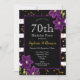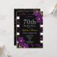 Fiesta de cumpleaños 70| Diseño de brillo negro y dorado con detalle floral púrpura. Esta es una plantilla lista para que agregues los detalles de tu fiesta.