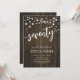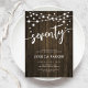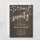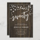 70.ª Invitación a la fiesta de cumpleaños. Diseño rústico de madera marrón oscura. Tarjeta de invitación clásica con luces de cadena de hadas y tipo de letra de guión. Perfecto para una elegante celebración de los 70 días. Personaliza con tus propios detalles. ¡Se puede personalizar para cualquier edad! Invitaciones Zazzle impresas o una plantilla imprimible digital de descarga instantánea.