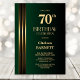 Invite a sus amigos y seres queridos a la celebración de su cumpleaños con esta invitación moderna para una fiesta de 70 cumpleaños de rayas doradas, negra y verde. El área de texto personalizable en esta plantilla de invitación le permite incluir todos los detalles necesarios para la celebración de su cumpleaños especial, incluyendo la fecha, hora, lugar y la información de RSVP. Hay una variedad de tipos de papel y estilos de esquina disponibles para sus invitaciones únicas, junto con la opción de descargar si prefiere un formato digital.