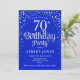 70.ª Invitación a la fiesta de cumpleaños. Elegante diseño en azul real y purpurina falso plateado. Presenta un diseño elegante de tipo de letra y letra de guión. Mándame un mensaje si necesitas edad personalizado.