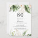 Invitación Fiesta de cumpleaños 80 con follaje tropical flora