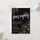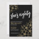 Elegante Ochenta Oro Negro Invitación de la Fiesta de Cumpleaños 80. Una divertida pero elegante invitación a la fiesta de cumpleaños número 80 con flores de oro y blanco para los jóvenes en el corazón. Por favor, ten en cuenta que el "oro" es solo un color, no se usa ningún brillo o Relieve metalizado. Un patrón de flores juguetón enmarca una tipografía de escritura "ella tiene ochenta" mezclada con un tipo de letra serif más clásico. Celebra ochenta años de vida con este hermoso diseño botánico. La parte divertida es que puedes cambiar TODOS los colores. No sólo se pueden cambiar los colores de fondo y el tipo de letra, sino que también se pueden cambiar las líneas de las flores. Disponible en forma de invitación impresa, o como una invitación digital descargable que puede enviar por correo electrónico o que ha impreso localmente.