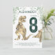 Celebra al niño que ama los dinosaurios que cumple 8 años con este T-Rex rugiente y estegosaurio adorable que invita a los fanáticos de los dinosaurios a una fiesta de cumpleaños número 8. Personaliza esta invitación de Tyrannosaurus y estegosaurio agregando el nombre del niño o niña que cumple años, el número del cumpleaños y los detalles de la fiesta y estarás listo para una divertida fiesta de cumpleaños con tema verde de dinosaurios. Todas las especies de dinosaurios son bienvenidas. Ilustraciones de dinosaurios de la era jurásica prehistórica, obra de arte original de la artista Catherine Sweetman.