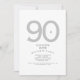 Invitación a la fiesta de cumpleaños número 90 simple de plata y blanco.