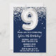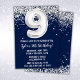 Invitación Fiesta de cumpleaños 9 de Navy Blue Silver