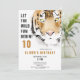 Invitación de cumpleaños de acuarela de cabeza de tigre. Prepárate para un momento salvaje con esta adorable invitación de cumpleaños con tema de tigre. Con una encantadora ilustración de acuarela de la cabeza de un tigre, esta invitación marca el tono para una divertida aventura en la jungla. Personalizable con tu nombre, edad, fecha, hora, ubicación de la fiesta y RSVP. Es ideal para celebraciones de cualquier edad. Impreso en papel de alta calidad con colores vibrantes, seguramente impresionará a tus invitados desde el primer rugido.