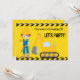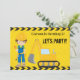 Invitación a la fiesta de cumpleaños de la cinta de advertencia de los personalizados de Guay para un niño que ama los vehículos de construcción en negro y amarillo. La tarjeta de un niño divertido invita a un niño que ama los autos y camiones. Personalizar con el nombre de sus hijos y los detalles del fiesta.