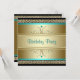 Hermosa invitación de cumpleaños azul turquesa y dorado. Esta invitación de fiesta de jade y dorado se personaliza fácilmente para su evento.