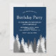 Sorprenda a sus huéspedes con esta elegante invitación de cumpleaños con hermosos pinos con tipografía moderna en un fondo azul marino. Simplemente agregue los detalles de su evento en esta plantilla fácil de usar para convertirla en una invitación única.