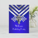 Invitación Fiesta de Cumpleaños Azul Real con Raya Plateada