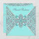 Elegante invitación para fiestas de 16 años en plata y verde azulado azul joyel. Esta elegante invitación de cumpleaños azul y plata verde azulada funciona bien para una quinceañera, chicas cualquier fiesta de cumpleaños número, mujeres cualquier fiesta de cumpleaños, verde azulada invitación de boda azul plata, fiesta de aniversario, evento corporativo y cualquier otra ocasión especial. Añade tus detalles al frente y/o al revés simplemente añadiendo tus detalles del evento, estilo de fuente, tamaño de fuente y color, y texto. Atención: todos los diseños de invitación que encontrarás en Zazzle son gráficos impresos en papel plano sin joyas, arcos, arcos, piezas grabado en relieve o añadidas.