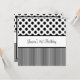 Invitaciones a fiestas de cumpleaños. Apropiado para todos los cumpleaños y eventos de la edad. Estilo sencillo con colores de polka blanco y negro y rayas con adornos. Rsvp está disponible bajo petición en estilo similar.