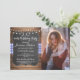 Invitación Fiesta de cumpleaños Blue Check Rustic Chalk Wood