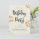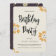Moda y moderna invitación para fiestas de cumpleaños con tipografía elegante y elementos florales de bonito.