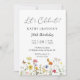 ¡Celebremos tu cumpleaños! Flores silvestres y mariposas coloridas crean un diseño rústico y botánico para tus invitaciones de cumpleaños. Flores amarillas, naranjas, rosadas y azules bailan en la parte inferior. Las fuentes serif y cursiva añaden a este hermoso diseño clásico. Cambia fácilmente el año para reflejar qué cumpleaños estás celebrando.