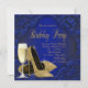 Invitación Fiesta de Cumpleaños Champán Tacón Alto Azul Real