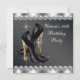 Zapatos elegantes de tacón alto con estampado de leopardo y diamantes invitación para la fiesta de cumpleaños de una mujer. Esta elegante y moderna invitación de cumpleaños número 40 y cualquier otro número, en negro y blanco, se personaliza fácilmente para su evento añadiendo los detalles del evento, el estilo de letra, el tamaño y color de la letra, y la redacción. Tenga en cuenta que todos los stickers, tarjetas y diseños de invitaciones que encontrará en Zazzle son gráficos impresos sin joyas reales, lazos, relieve, estampado o piezas o partes añadidas.