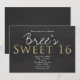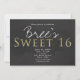 Invitaciones de Fiesta de Cumpleaños Chic SWEET 16 Gris Oscuro y Dorado.