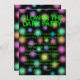 Invitación a una fiesta con brillo en la oscuridad con luz negra multicolor y letrero de neón verde que brilla en la oscuridad. Esta divertida invitación de fiesta de brillo se personaliza fácilmente para su evento simplemente agregando sus detalles en el estilo de fuente y color de su elección.