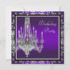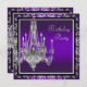 Plantilla de invitación de cumpleaños con candelabro de cristal y damasco púrpura elegante. Esta hermosa invitación de fiesta en tonos púrpura y gris plateado se personaliza fácilmente para su evento simplemente eligiendo el botón "¡Personalízalo!" para comenzar a agregar los detalles de su evento, estilo de letra, tamaño y color de letra, y redacción. Tenga en cuenta que todos los stickers, tarjetas y diseños de invitaciones que encontrará en Zazzle son gráficos impresos sin joyas, lazos, partes o piezas en relieve, repujadas o añadidas. com
