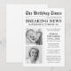 Invitación Fiesta de cumpleaños con foto de periódico única