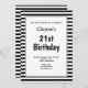 Invitación Fiesta de cumpleaños con franjas blancas/negras