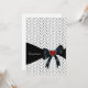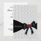 Plantilla de invitación para una fiesta de cumpleaños o evento con lunares negros y blancos y lazo negro. Este diseño de plantilla funciona bien como invitación para una fiesta de cumpleaños, cóctel, fiesta de vacaciones, fiesta de jubilación, fiesta de graduación y cualquier otra ocasión especial. Personalice con su elección de estilo de fuente y color de fuente, y color de fondo.