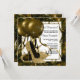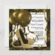 Invitaciones de fiesta de cumpleaños de mujer con zapatos de tacón alto con purpurina negros y dorados elegantes. Esta invitación de cumpleaños de mujer negra y dorada elegante se personaliza fácilmente para su fiesta o evento simplemente agregando los detalles del evento, el estilo de fuente, el tamaño y el color de la fuente y la redacción.