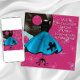 Fabuloso cincuenta rock n roll estilo años 50 de salto de calcetín invitaciones para fiesta de baile con discos de vinilo de 45 rpm rosados y azul teal. Esta divertida y nostálgica invitación de fiesta retro1950 es fácil de personalizar para su fiesta o evento agregando los detalles del evento, estilo de fuente, tamaño y color de la fuente y redacción. Tenga en cuenta que todos los diseños de tarjetas e invitaciones que encontrará en Zazzle son gráficos impresos sin joyas reales, lazos, partes o piezas en relieve, repujadas o agregadas. Algunas imágenes Simply Sumara.