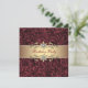 Invitaciones elegantes de cumpleaños con vino tinto borgoña y dorado. Esta hermosa invitación de fiesta borgoña y dorada se personaliza fácilmente para su evento agregando los detalles del evento, estilo de fuente, tamaño y color de la fuente, y redacción. Tenga en cuenta que todos los stickers, tarjetas y diseños de invitaciones que encontrará en Zazzle son gráficos impresos sin joyas reales, lazos, partes o piezas añadidas en relieve o grabadas.