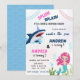 Invitación de cumpleaños de hermanos. Invitación de tiburones y sirenas.. Cualquier edad