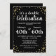 ¿Estás buscando la invitación perfecta para un cumpleaños conjunto para una celebración para adultos? ¡Aquí lo encontrarás! Con un elegante fondo negro que es fácilmente personalizable, purpurina de confeti dorado y una deliciosa plantilla de celebración doble, esta invitación al cumpleaños adulto seguro hará que cualquier ocasión especial brille. Con su plantilla fácil de personalizar, esta invitación es perfecta para cualquier fiesta de cumpleaños o celebración. Ya sea que esté buscando añadir un toque de glamour con el purpurina o sólo quiera personalizar de fondo para coincidir con el tema de su día especial, puede hacerlo todo con esta invitación! Haga de su evento un inolvidable con esta fabulosa invitación de cumpleaños para adultos.