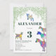 Cabras coloridas con vivos colores rosa, morado, azul, naranja, amarillo y agua con un fondo folclórico verde. Una linda granja de animales invitación a la fiesta de tercer cumpleaños con cabras y cabras paradas en cabras. Esta divertida invitación a la fiesta es fácil de personalizar para crear una invitación de fiesta única para los niños y los amantes de las cabras adultas. Coloridos ilustraciones originales de cabras psicodélicas de la artista Catherine Sweetman