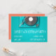 Una invitación de cumpleaños temática de música funky, genial, retro e hip, adecuada para una adolescente con un gráfico de un tocadiscos de vinilo retro azul sobre un fondo azul. El texto se puede personalizar completamente para incluir tus datos personales. Colorido y alegre, para una fiesta de cumpleaños adolescente con temática musical.