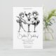 Este diseño de fiesta de cumpleaños de ballet presenta tres bailarinas caprichosas ilustradas en elegante blanco y negro, creando una apariencia atemporal e inspirada en los cuentos de hadas. El delicado trabajo de línea y la tipografía clásica le dan un aspecto refinado pero juguetón, perfecto para pequeñas bailarinas que aman girar, tutús y celebraciones mágicas.