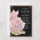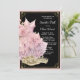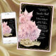 Invitación de balón de zapatillas de oro rosa y negro con zapatillas de diamantes bonitas, vestido y tiara en un fondo rosa, negro y dorado. Puede cambiar el color del borde rosa y el color del texto. Esta invitaciones de fiesta de zapatillas rosa, negro y dorado se personalizan fácilmente para su evento simplemente agregando sus detalles.