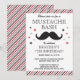 Fun bigote invitación a la fiesta de cumpleaños con un bigote negro divertido rodeado de estrellas rojas y grises. Los bordes superior e inferior son de rayas diagonales. Personalizable de texto negro. Diseño retro divertido para fiestas infantiles. Para solicitudes de personalizado o ayuda para personalizar, por favor, utilice el enlace de contacto de tienda anterior.