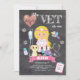 Fiesta de cumpleaños del Chica del Chalkboard de los ojos marrones rubios - definitivamente el gato está fuera de la bolsa en este. La invitación de este chica para el cumpleaños de veterinaria es la medicina correcta para darle a tu pequeña la celebración que se merece. Presentando a una joven veterana ocupada rodeada de todos sus amigables pacientes animales. No te olvides de revisar la colección para ver si hay versiones diferentes que coincidan con tu pequeño veterinario. No hace falta un chequeo, la invitación de este chica por su cumpleaños, hará que el día sea inolvidable.