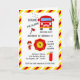 Invitación de cumpleaños de bombero con un diseño simple en blanco y negro personalizable a los detalles de su evento. Gráficos de PremiumClipart.