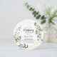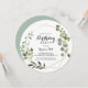 Esta invitación geométrica de oro tropical a la fiesta de cumpleaños es perfecta para una celebración de cumpleaños moderna. El diseño está decorado con hermosas hojas verdes pintadas a mano, adornando un marco geométrico dorado.
