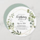 Invitación Fiesta de cumpleaños de caligrafía tropical de oro