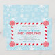 Celebre el primer cumpleaños de su pequeño copo de nieve con esta invitación de Winter ONEderland que presenta un marco de bastón de caramelo de menta roja sobre un fondo de copo de nieve azul hielo. "Winter ONEderland" aparece en letras festivas, con los detalles de la fiesta enmarcados por el borde dulce de bastón de caramelo. Los tonos azul hielo, turquesa, rojo y blanco crean una sensación de celebración invernal alegre. Todo el texto es totalmente personalizable, incluyendo el nombre, la fecha y los detalles del evento.