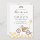 Invitación a la fiesta de cumpleaños de carreras de motocross en bicicleta de tierra amarilla