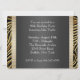 Invitación de cumpleaños de cebra con hermosos diamantes negros y dorados sobre un fondo de cebra.