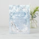 Invitaciones de cumpleaños de Cenicienta con hermosa zapatilla de cristal en un fantástico fondo de cuento de hadas azul claro. Estas invitaciones de Cenicienta se personalizan fácilmente para su evento simplemente agregando sus datos.