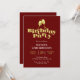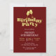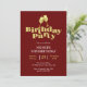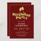 La invitación de cumpleaños moderna incluye champán de oro con texto tipográfico en negrita "fiesta de cumpleaños" con fondo de burdeos. Personalice las invitaciones de la fiesta de cumpleaños agregando su nombre y detalles del fiesta.